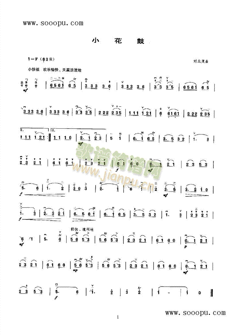 [其他乐谱]小花鼓 民乐类 二胡 刘北茂曲
