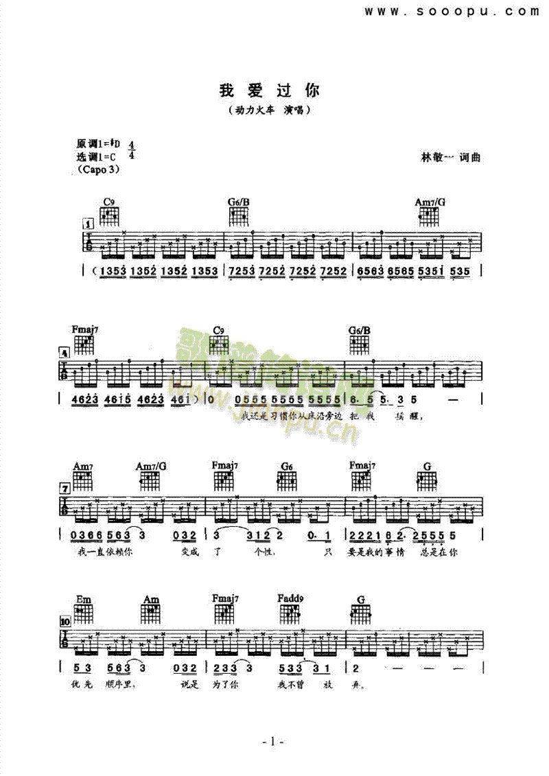 [其他乐谱]我爱过你 吉他类 流行 动力火车