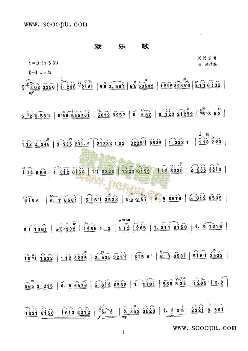 [其他乐谱]欢乐歌 民乐类 二胡 民间乐曲