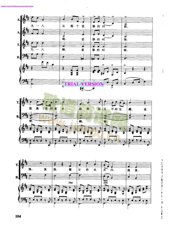 [四字歌谱]松花江上[合唱曲谱] 未知