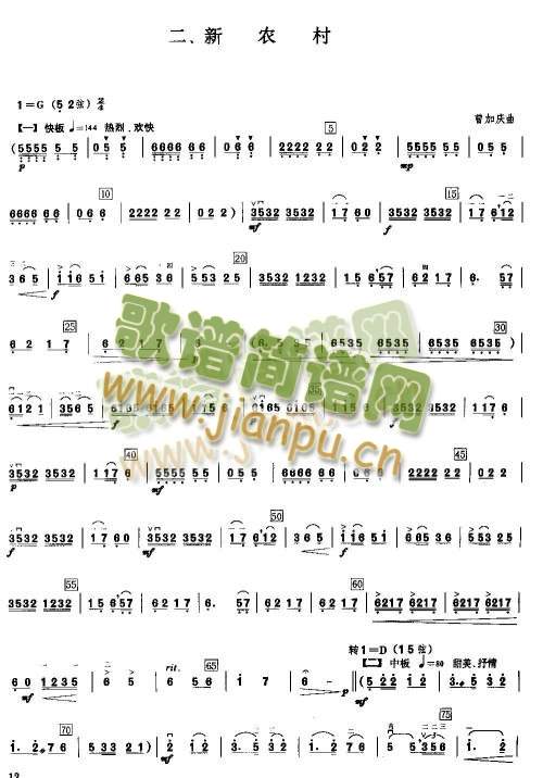 [二胡谱]新农村 二胡谱+扬琴伴奏谱