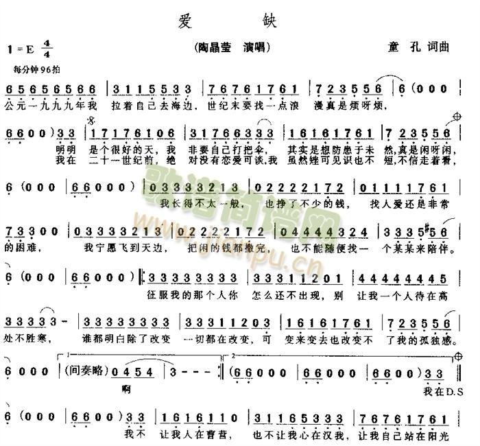 当前位置: 歌谱简谱网 > 二字歌谱 > 爱缺
