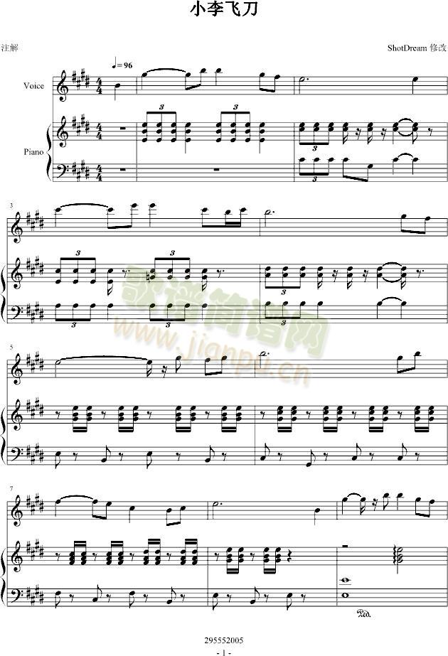 [钢琴谱]小李飞刀-琴笛合奏 小李飞刀
