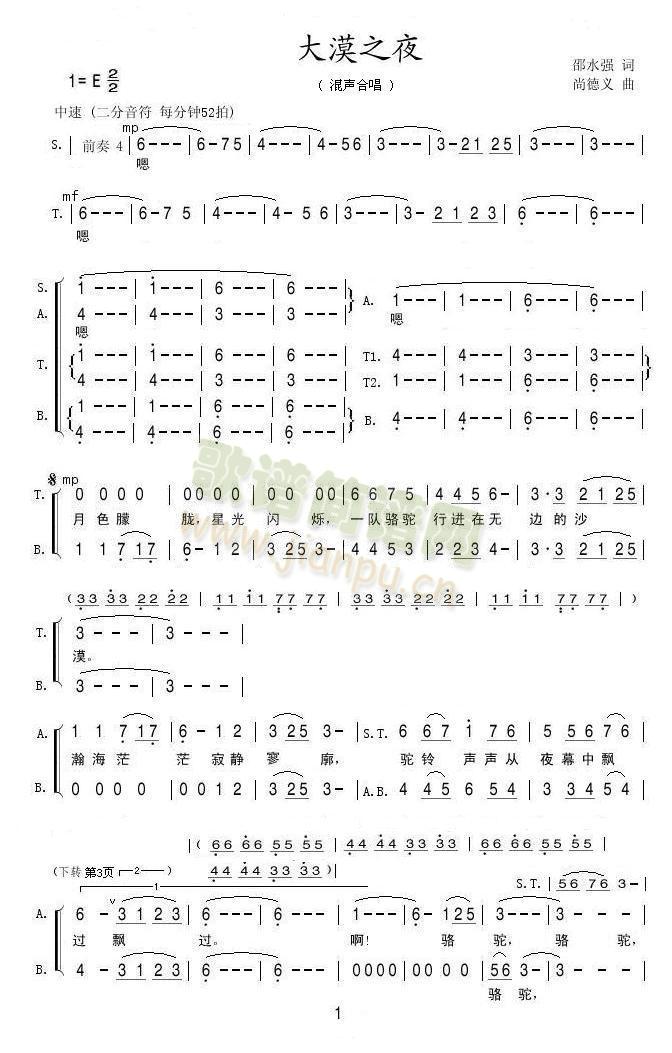 [四字歌谱]大漠之夜 混声合唱