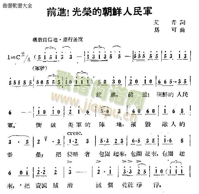 [八字歌谱]战斗在朝鲜多荣耀