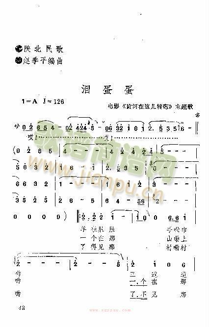 [九字歌谱]泪蛋蛋泡在沙蒿蒿林(陕北民歌) 孙志宽