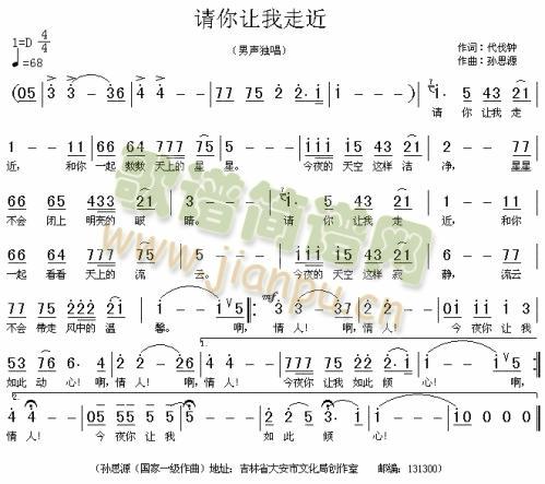 [六字歌谱]走近你走近我 孙国庆、屠洪刚、韦唯、胡月、张伟进
