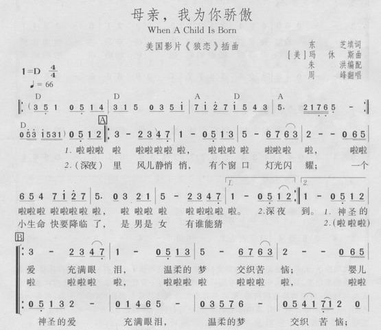 > 美国重唱歌曲《母亲,我为你骄傲》中文乐谱