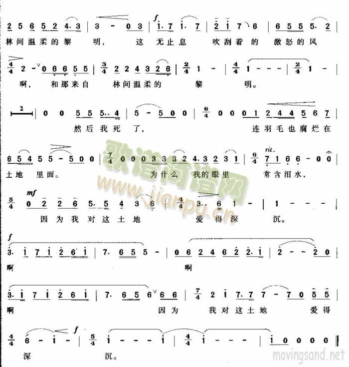 [四字歌谱]这块土地[合唱曲谱] 未知