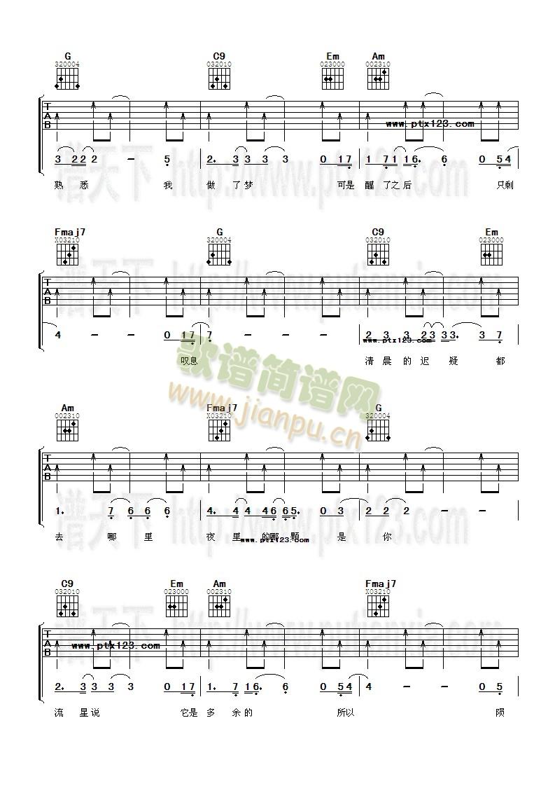 [吉他谱]流星(《流星花园》插曲) 郑钧