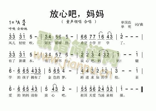 [五字歌谱]放心吧祖国(五线谱/简谱对照)