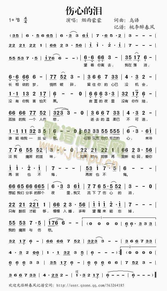 [四字歌谱]伤心的泪 烟雨蒙蒙