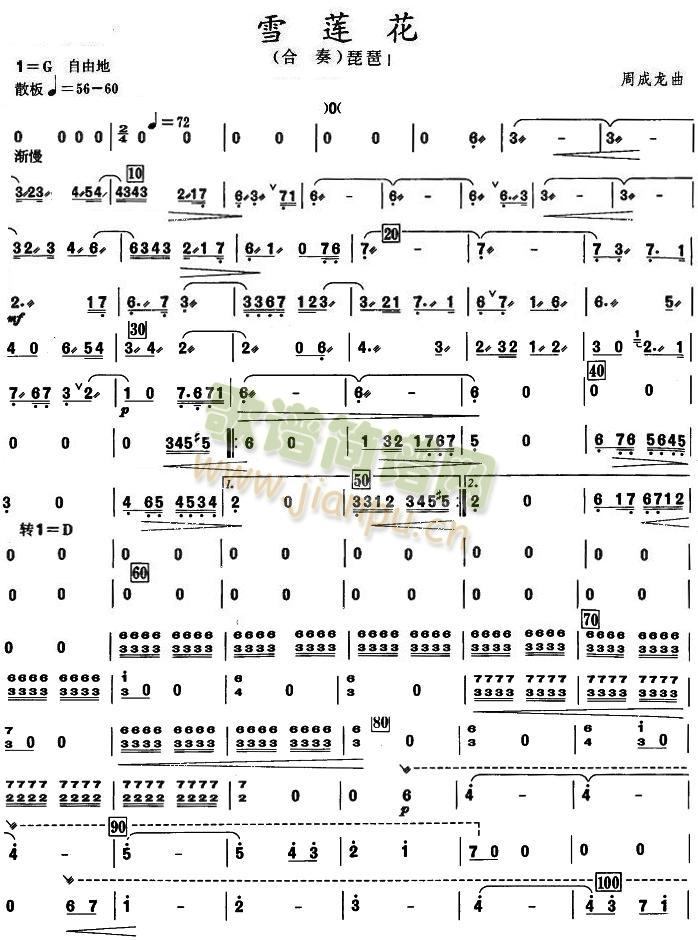 > 雪莲花琵琶分谱