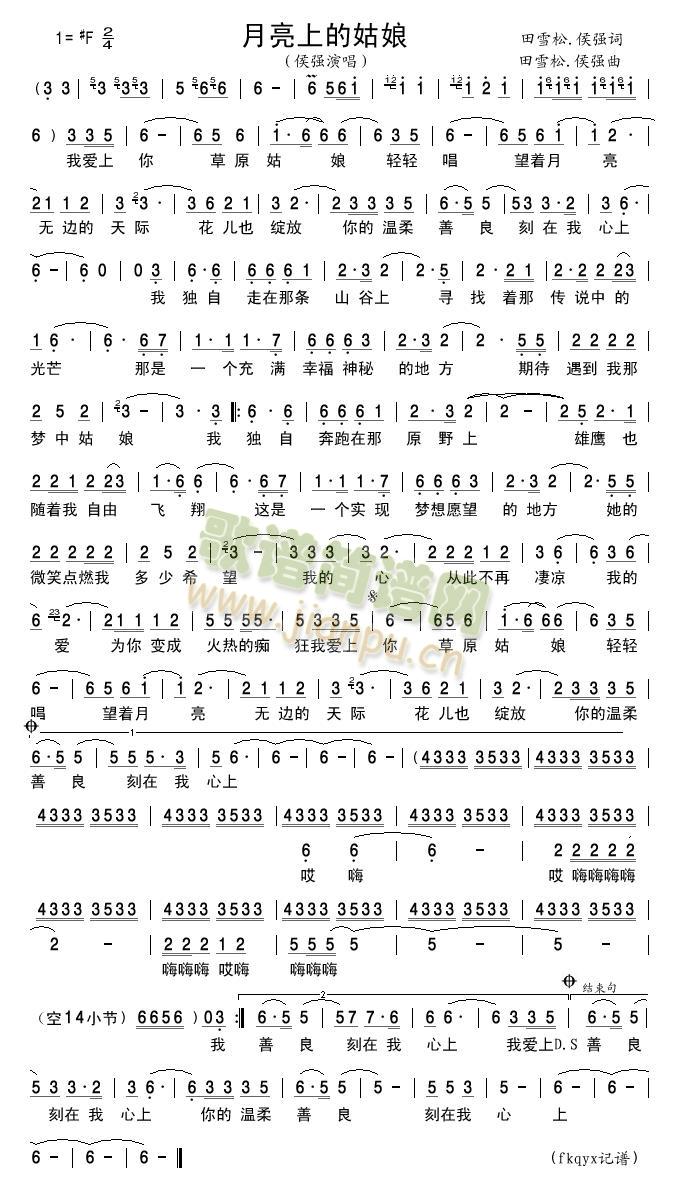 [六字歌谱]月亮上的姑娘 侯强