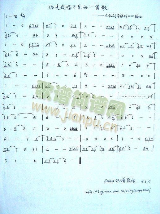 [九字歌谱]你是我心内的一首歌[彩谱] 王力宏、Selina
