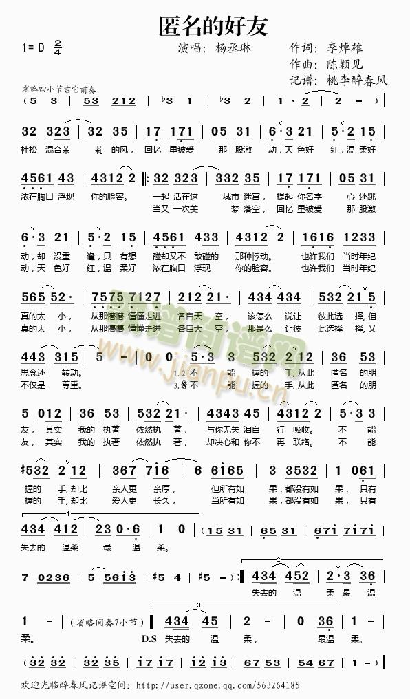 [钢琴谱]匿名的好友 杨丞琳 吴凌云编曲版最好的版本-钢琴谱(钢琴曲)-杨丞琳
