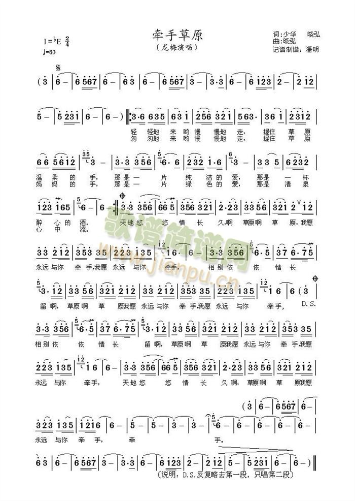 [四字歌谱]牵手草原 少华 晓弘词 晓弘曲 龙梅演唱