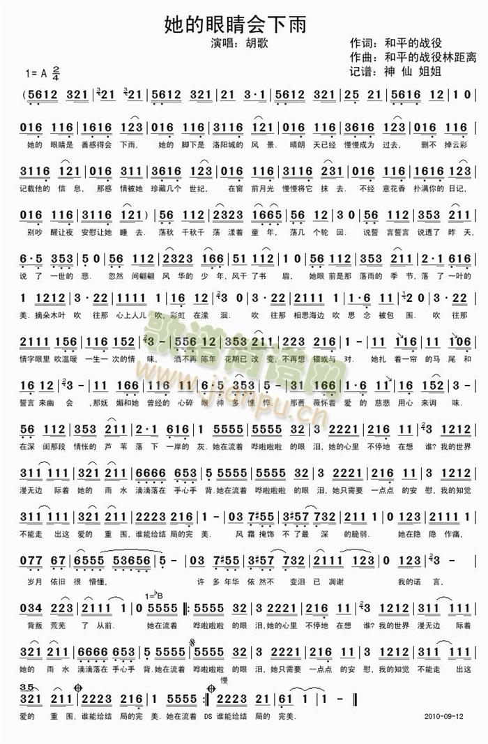 [七字歌谱]一个陌生的女孩[彩谱] 张明敏、余天、刘文正