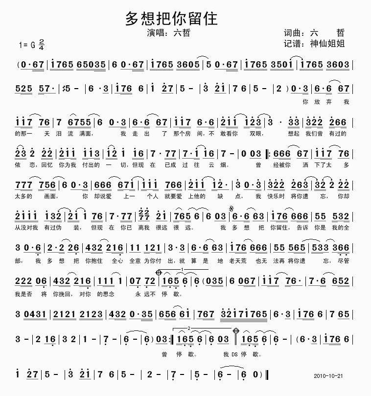 [六字歌谱]多想把你留住 六哲