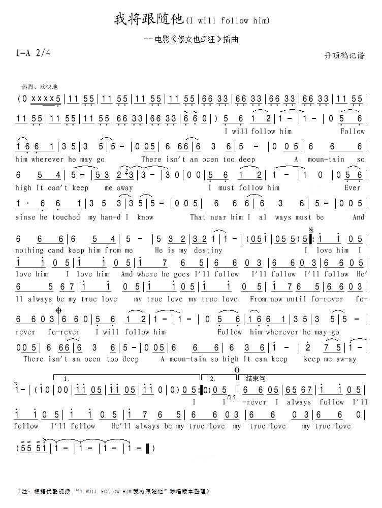 [五字歌谱]我将跟随他 I will follow him(独唱) 未知