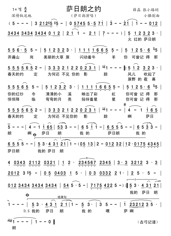 [七字歌谱]红艳艳的萨日朗 德德玛