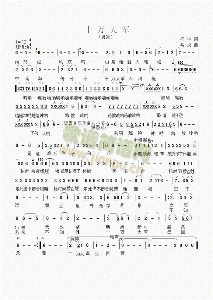 [五字歌谱]十万个明天 李中浩、杨楚营