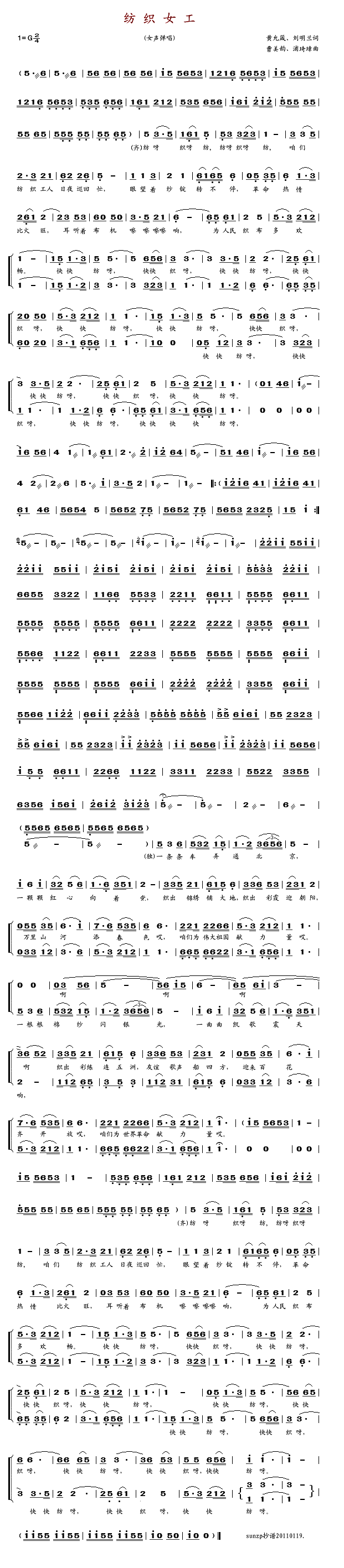 [四字歌谱]纺织女工(女声弹唱) 上海乐团潘慧珠等