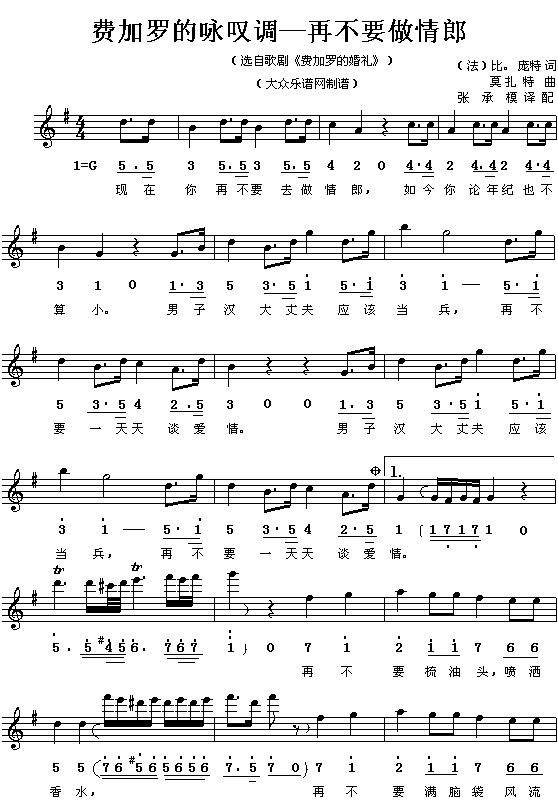 [六字歌谱](奥)莫扎特歌剧《费加罗的婚礼》选曲:再不要做情郎