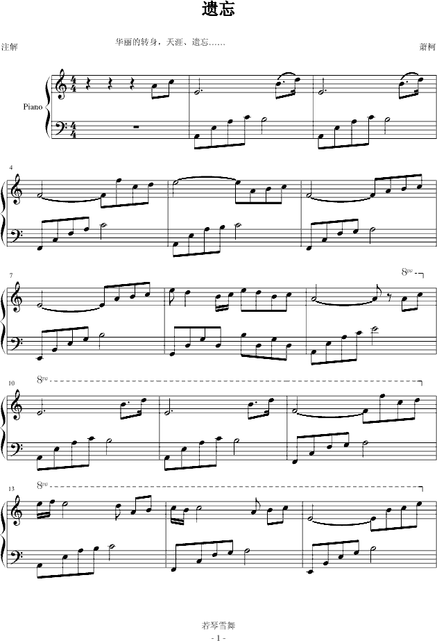 遗忘-钢琴谱(钢琴曲)-Chopinist