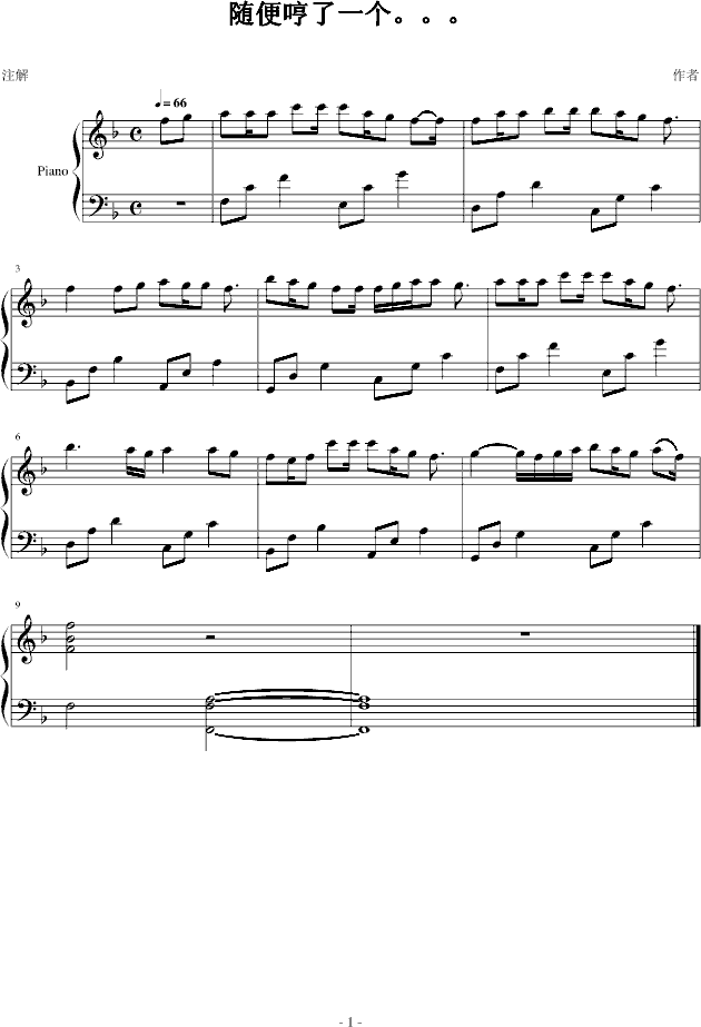 > 随便哼的一个-钢琴谱(钢琴曲)-王小特