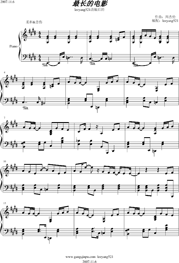 [钢琴谱]最长的电影 修正版-钢琴谱(钢琴曲)-周杰伦