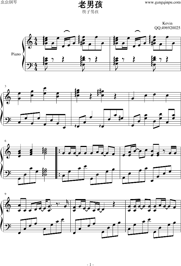 [钢琴谱]老男孩(简易独奏版)-钢琴谱(钢琴曲)-筷子兄弟