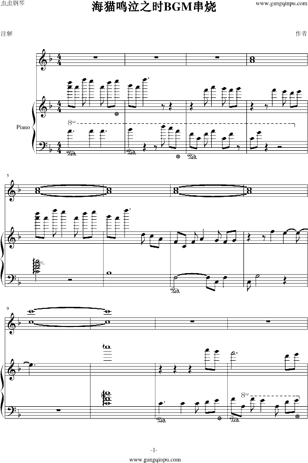 > 海猫鸣泣之时BGM串烧-钢琴谱(钢琴曲)-动漫影视