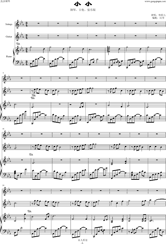 [钢琴谱]小小-钢琴谱(钢琴曲)-容祖儿