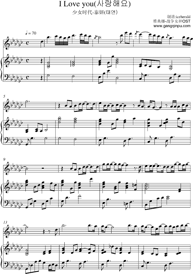 > 我爱你(雅典娜战争女神OST)-钢琴谱(钢琴曲)-泰妍