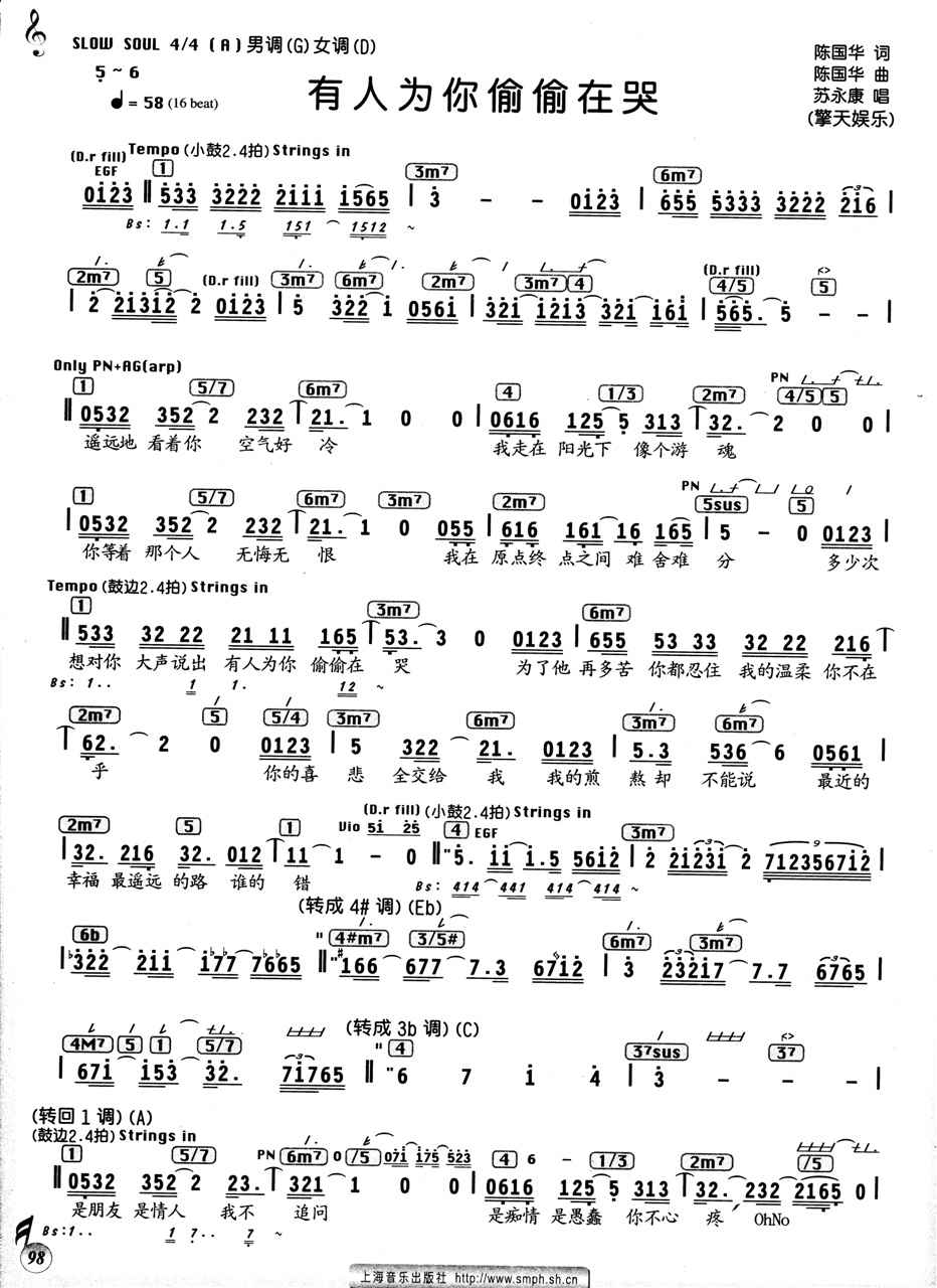 [四字歌谱]偷偷的哭 陈玉建