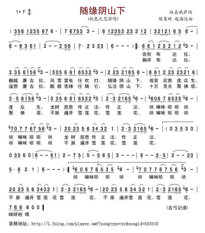 [五字歌谱]随缘阴山下 秋色之恋