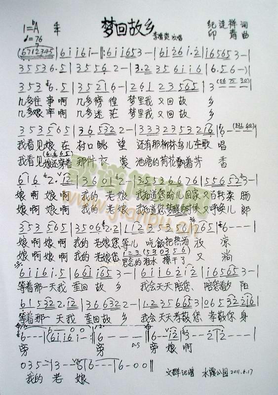 [笛箫谱]梦回故乡(葫芦丝谱)[笛萧曲谱] 未知