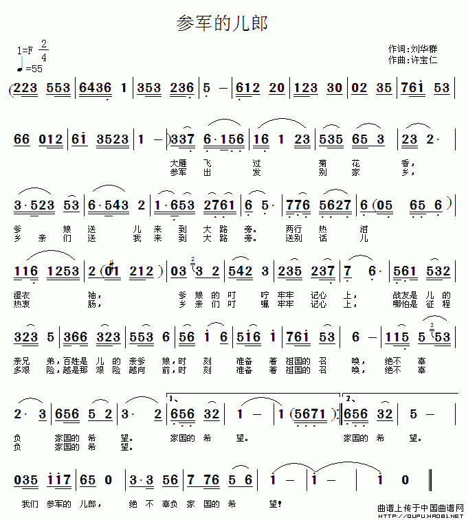 [五字歌谱]参军的儿郎