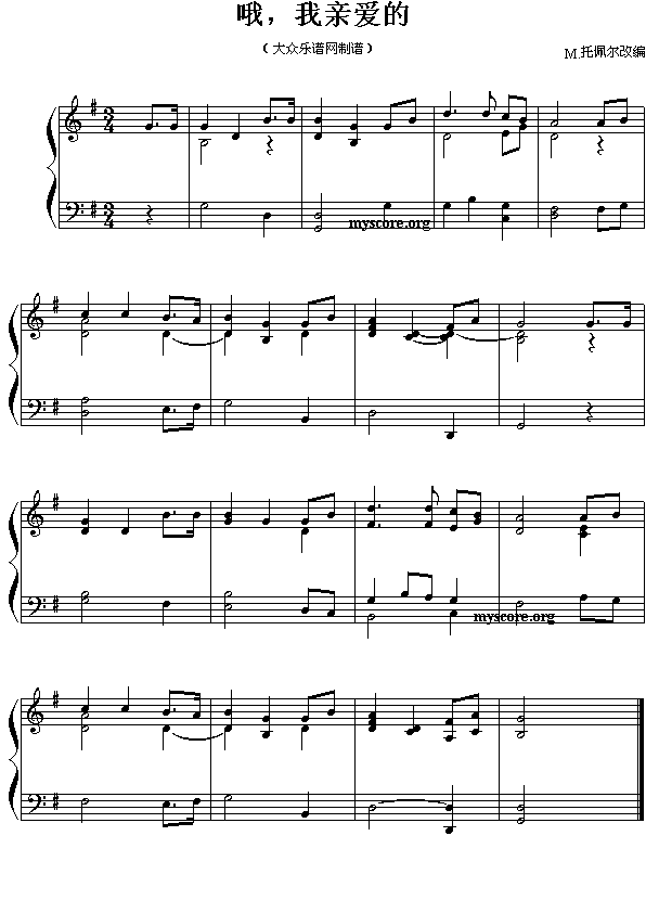 > 外国民歌改编的钢琴曲:哦,我亲爱的