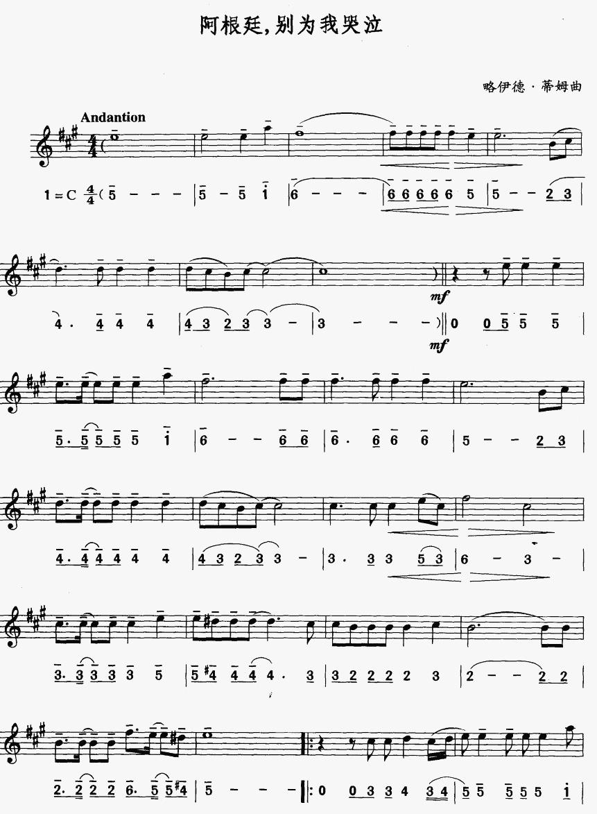 [钢琴谱]阿根廷别为我哭泣(五线谱版)[钢琴演奏乐谱] 理查德