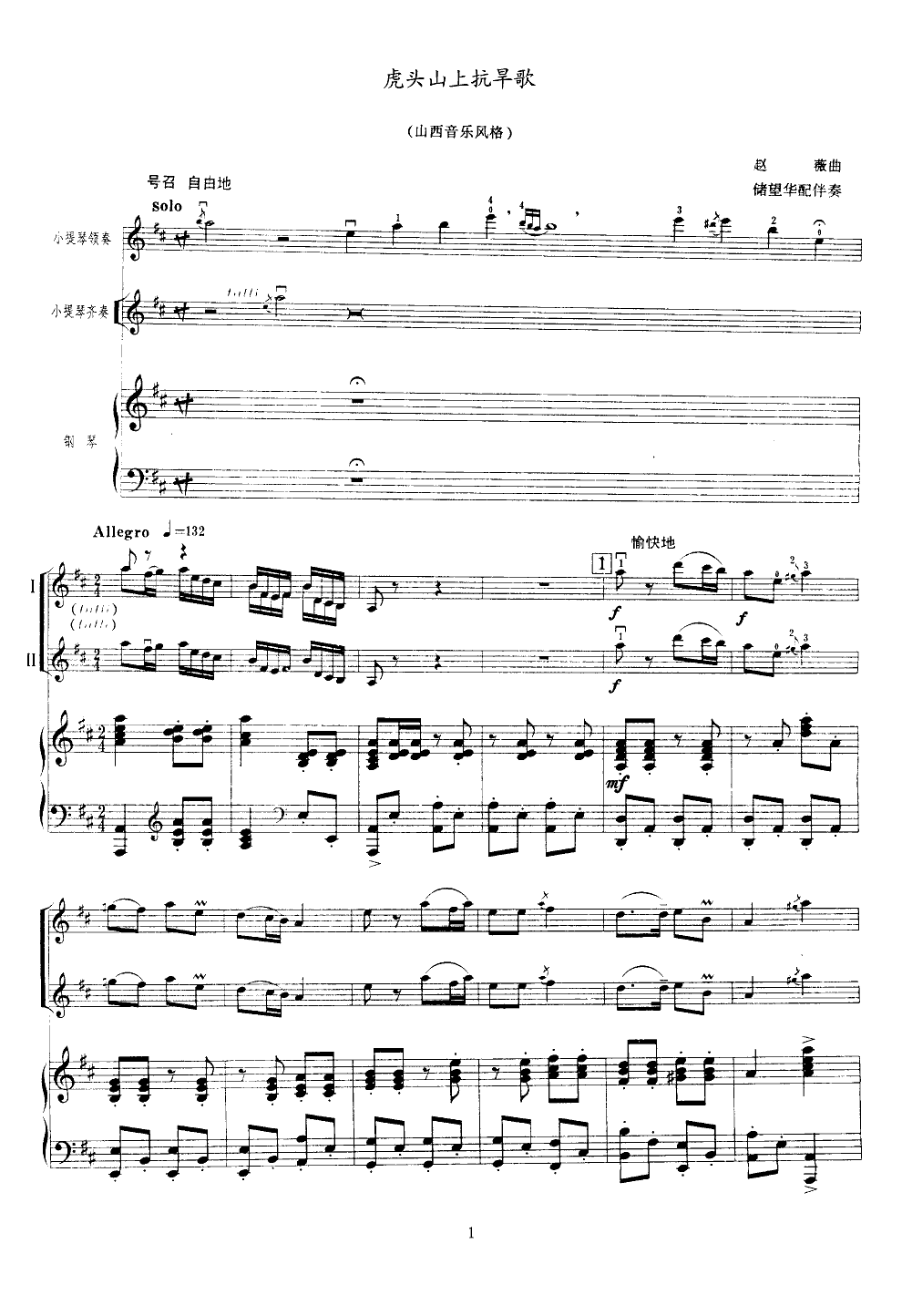 [小提琴谱]虎头山上抗旱歌(小提琴齐奏) 佚名