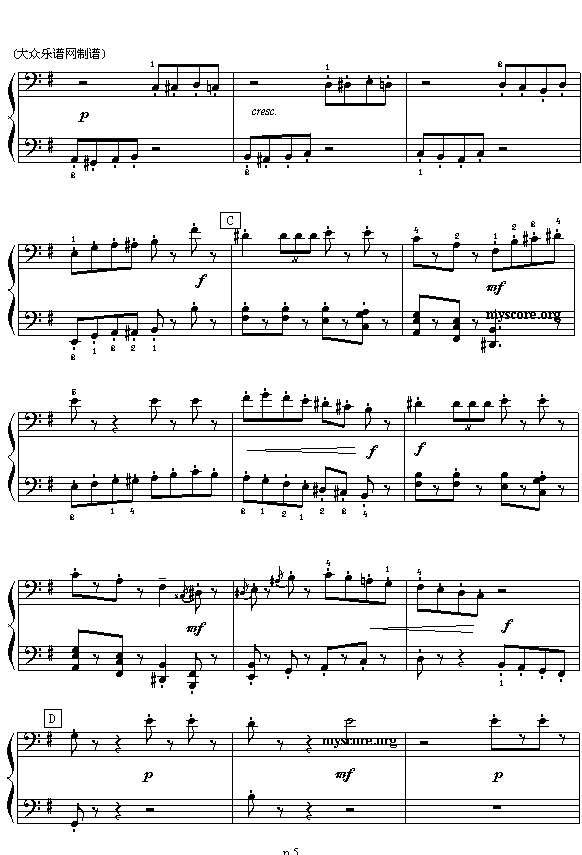 [钢琴谱]胡桃夹子中的中国舞曲 柴科夫斯基