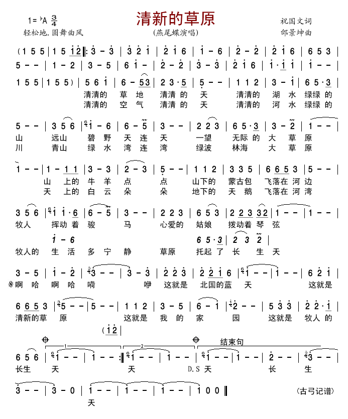 [二字歌谱]草原 克里沃博科夫合唱团演唱