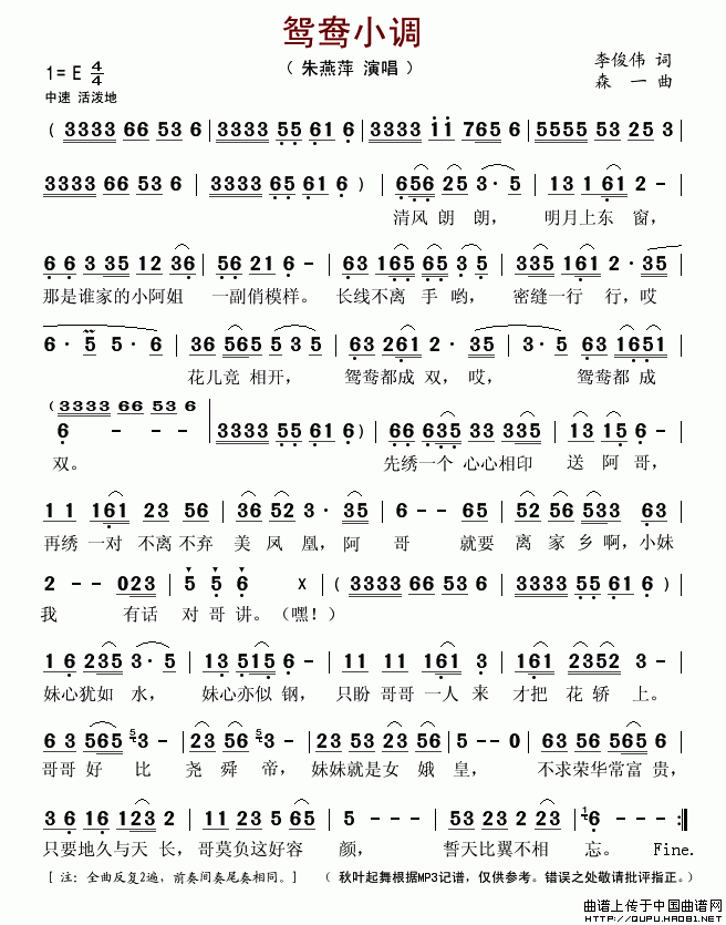 [三字歌谱]鸳鸯锦(电视剧《梅花三弄》插曲) 叶欢