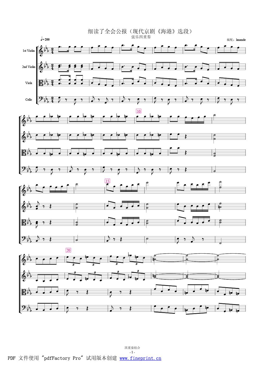 [小提琴谱]细读了全会公报(弦乐四重奏)
