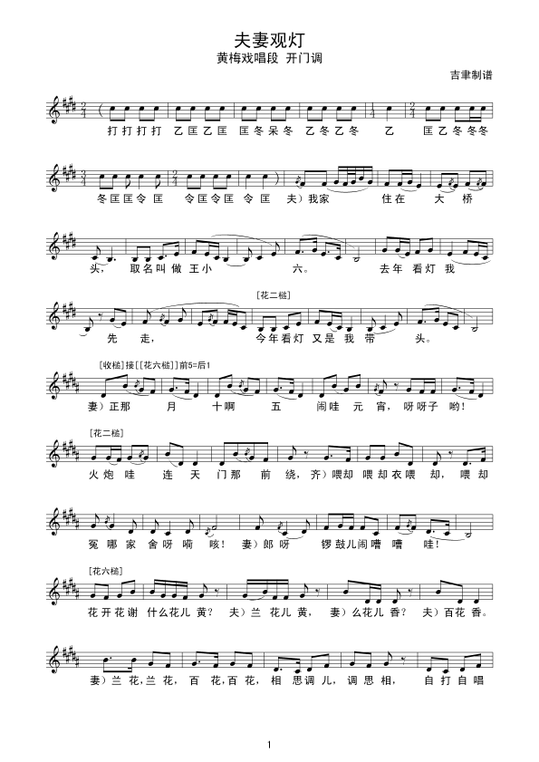 [六字歌谱]夫妻观灯(黄梅戏唱段)线谱