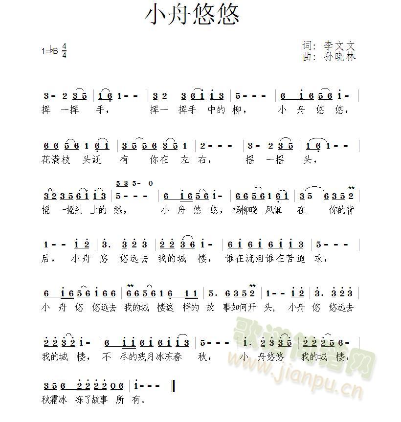 > 小舟悠悠 原创歌曲 李文文词 孙晓林曲