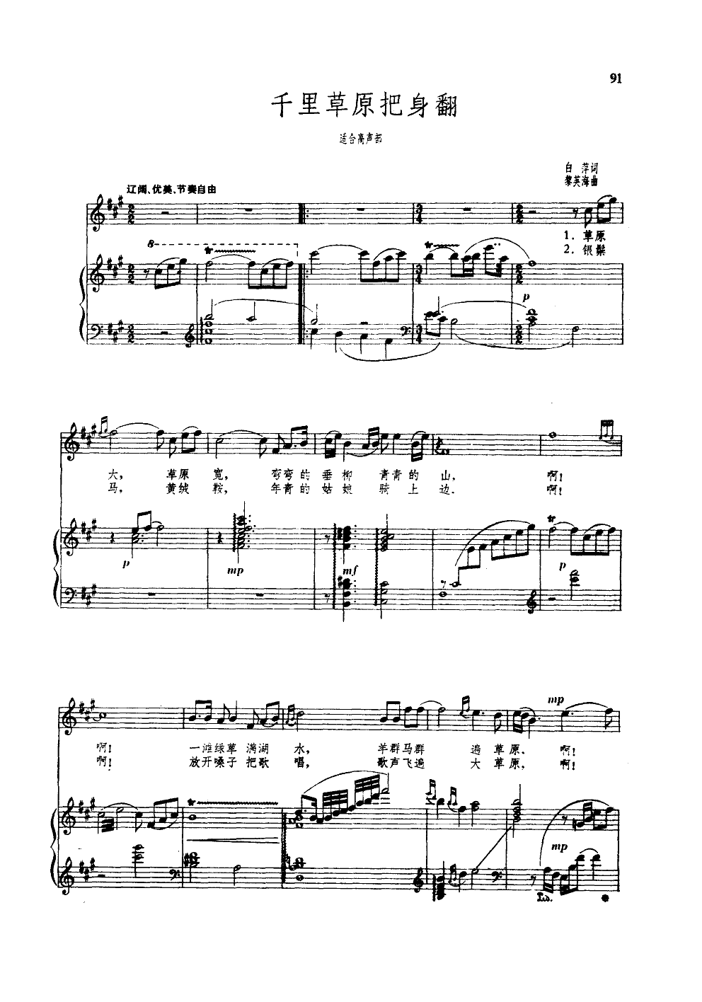 [钢琴谱]千里草原把身翻(钢伴谱) 孙家馨
