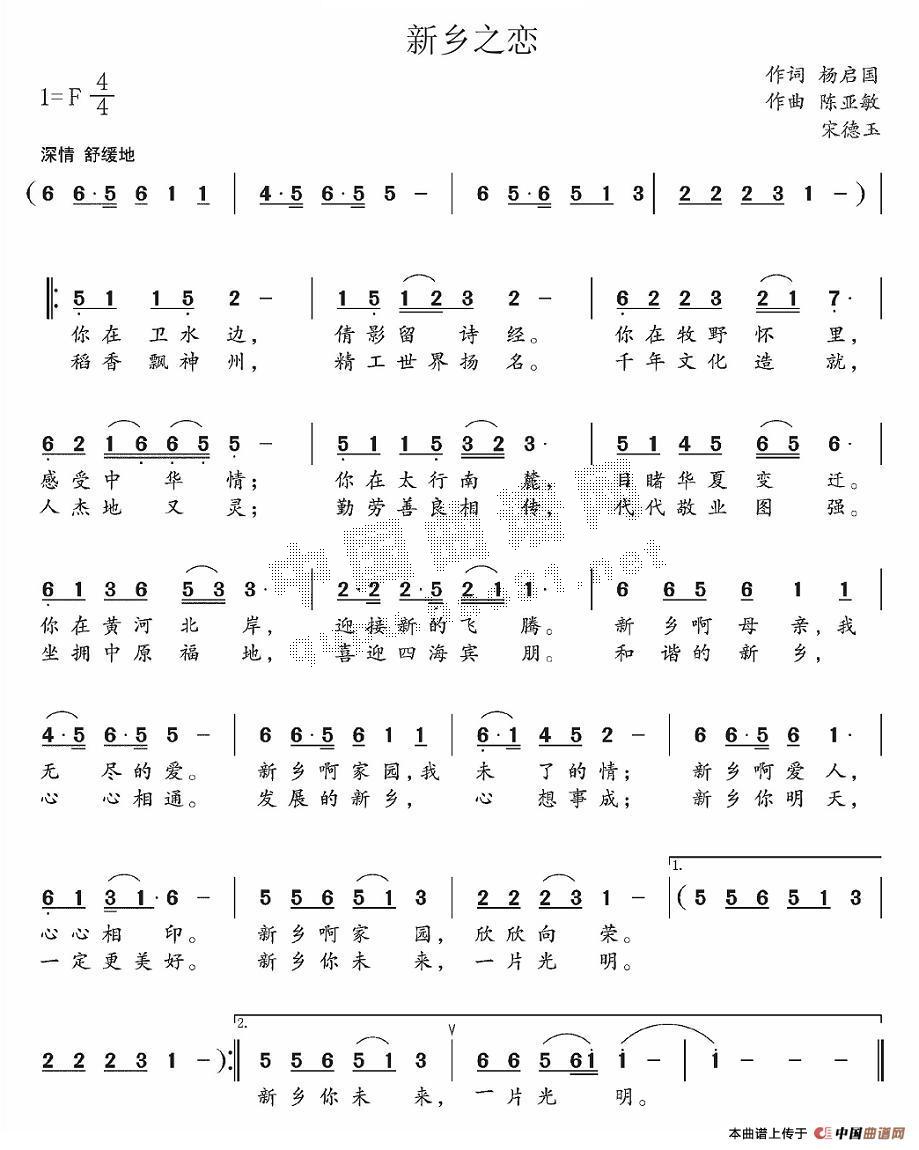 [四字歌谱]新乡之恋 作词:杨启国作曲:陈亚敏宋德玉